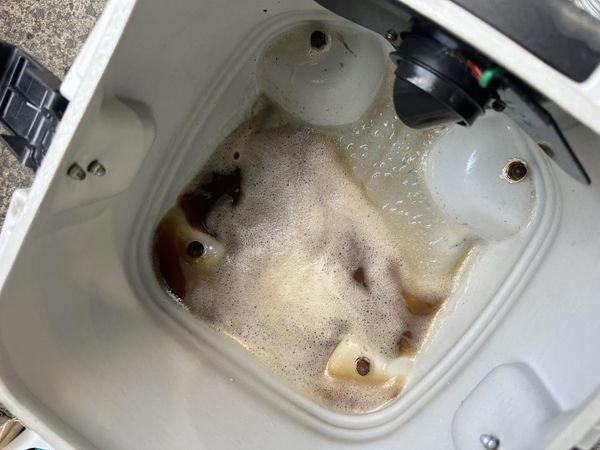 3枚目: これが汚れを取り除いた水!どれだけキレイになったか一目瞭然です。